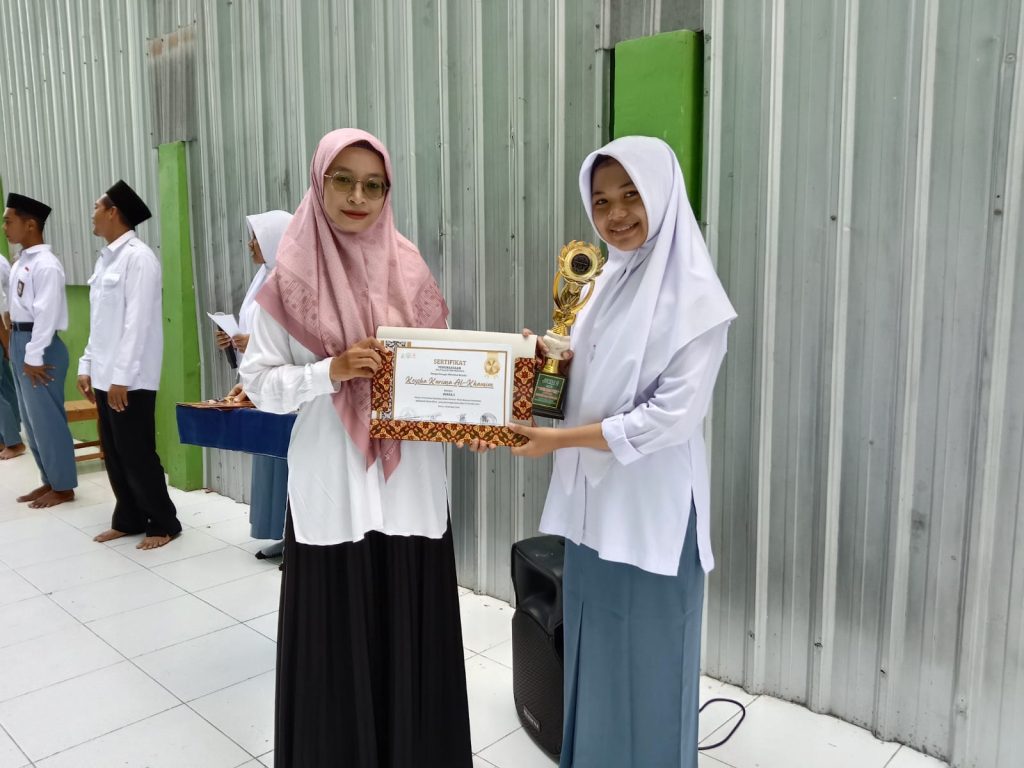 Senin, (28/10/2024) Waka Kesiswaan SMK Islam Anharul Ulum, Luki Andrian seusai apel memperingati hari Sumpah Pemuda 2024, mengungkapkan rasa bangganya dan memberikan apresiasi kepada para siswa berprestasi tersebut, sekaligus penyerahan simbolik piagam serta piala lomba.